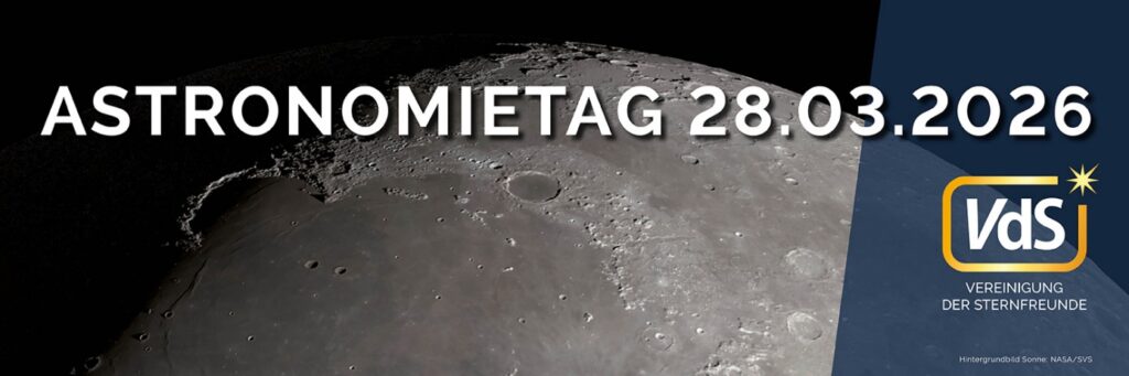 - Astronomietag 2026, 28. März 26Am 28. März ist Astronomietag – wir starten am Abend ab 19.30 Uhr. Am Astronomietag bietet der Astronomische Arbeitskreis Mönchengladbach e.V. zahlreiche Aktivitäten an, damit jeder einmal den Sternhimmel live erleben kann – zentral koordiniert von der Vereinigung der Sternfreunde e.V., kurz VdS. Weitere Sternwarten, Vereine, Planetarien, Forschungsinstitute, Museen, Schulen und auch Einzelpersonen in Deutschland … Weiterlesen