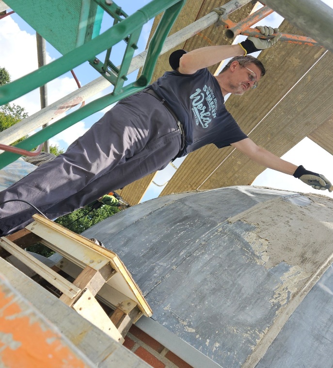 - Revitalisierung der Sternwartentechnik, Arbeiten am 16.08.25Und weiter gehts mit der Revitalisierung: die Elephantenhaut ist zu mehr als der Hälfte von der Kuppel entfernt.